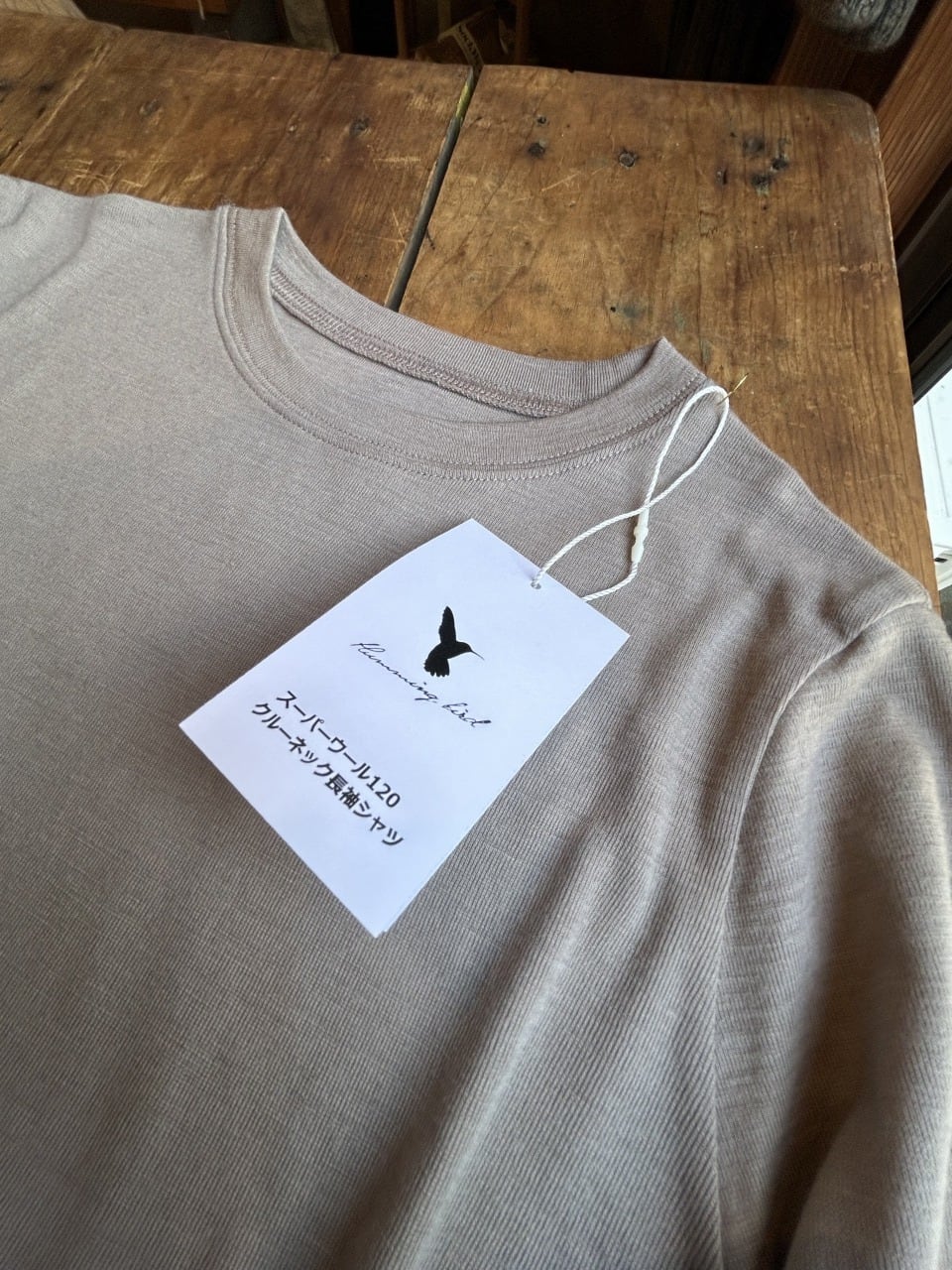 いつも質の良い靴下を届けてくれるHumming bird のお洋服ラインから、これまた質の良いウール100%の長袖Tシャツのご紹介です。