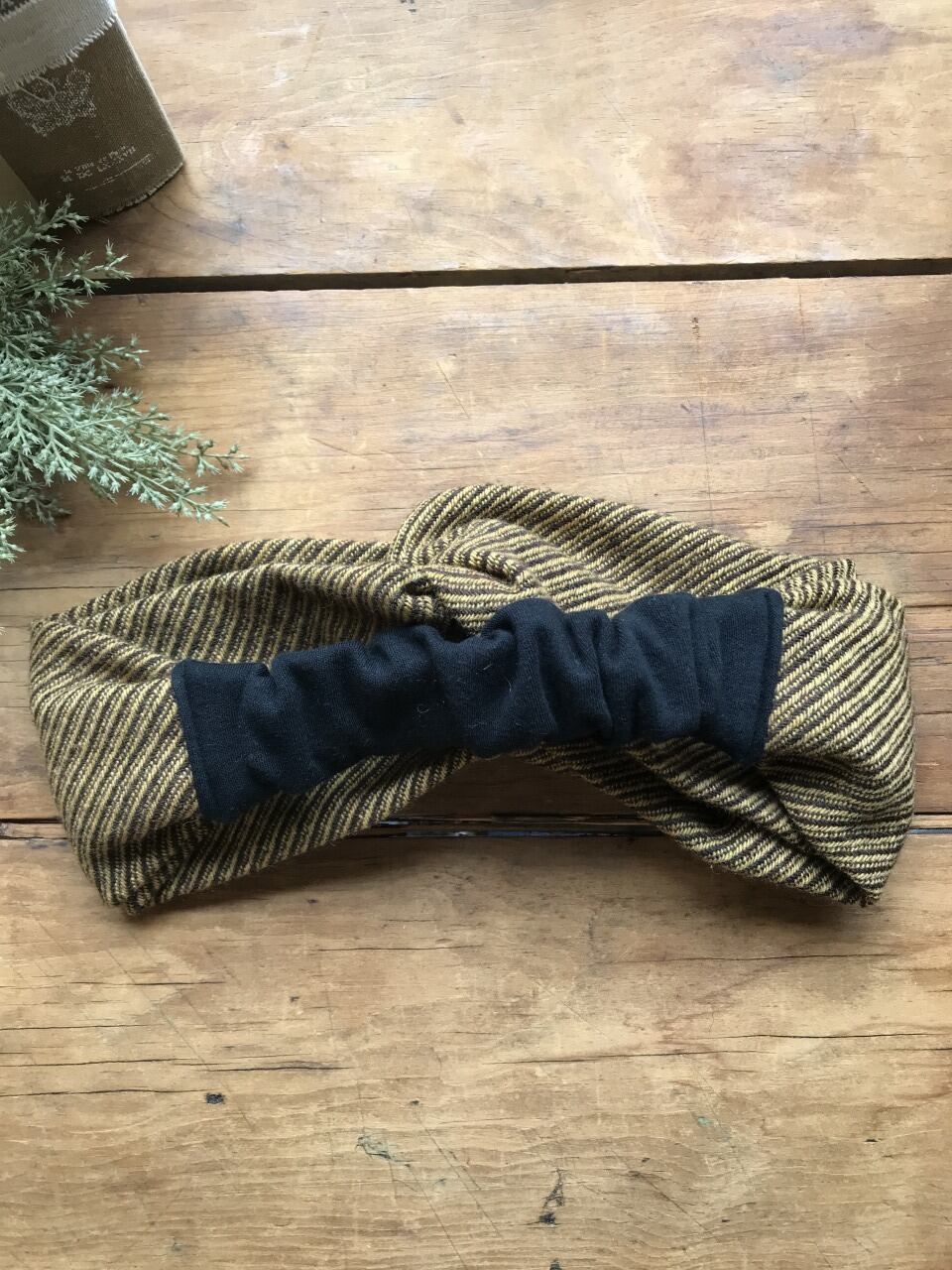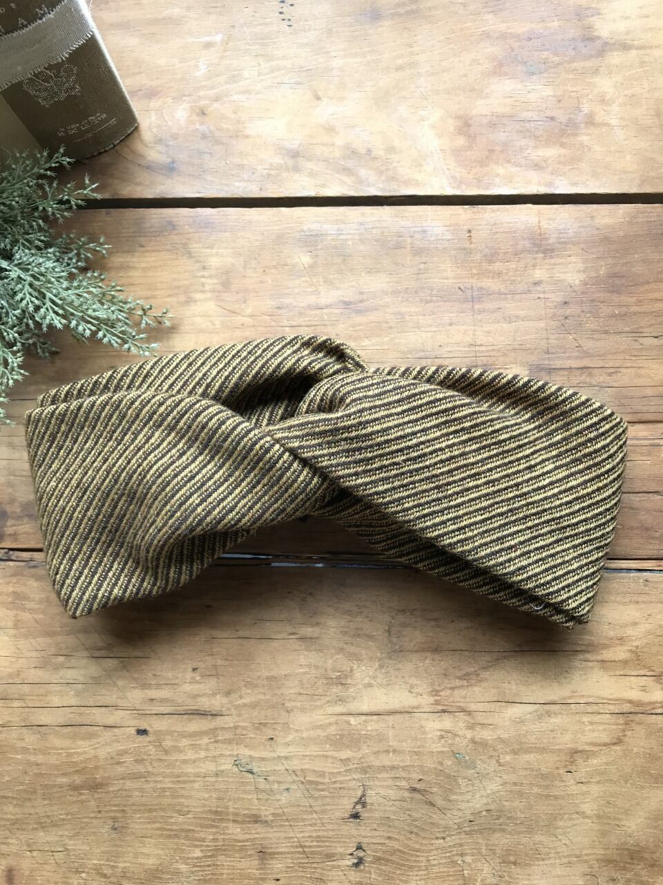 こちらは冬らしい生地を使用したクロス型細のヘアバンドです。