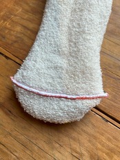 これは、履き口と爪先の2か所で表と裏をつなぎ合わせてあるからなのです。(なんと一足一足手作業で!)