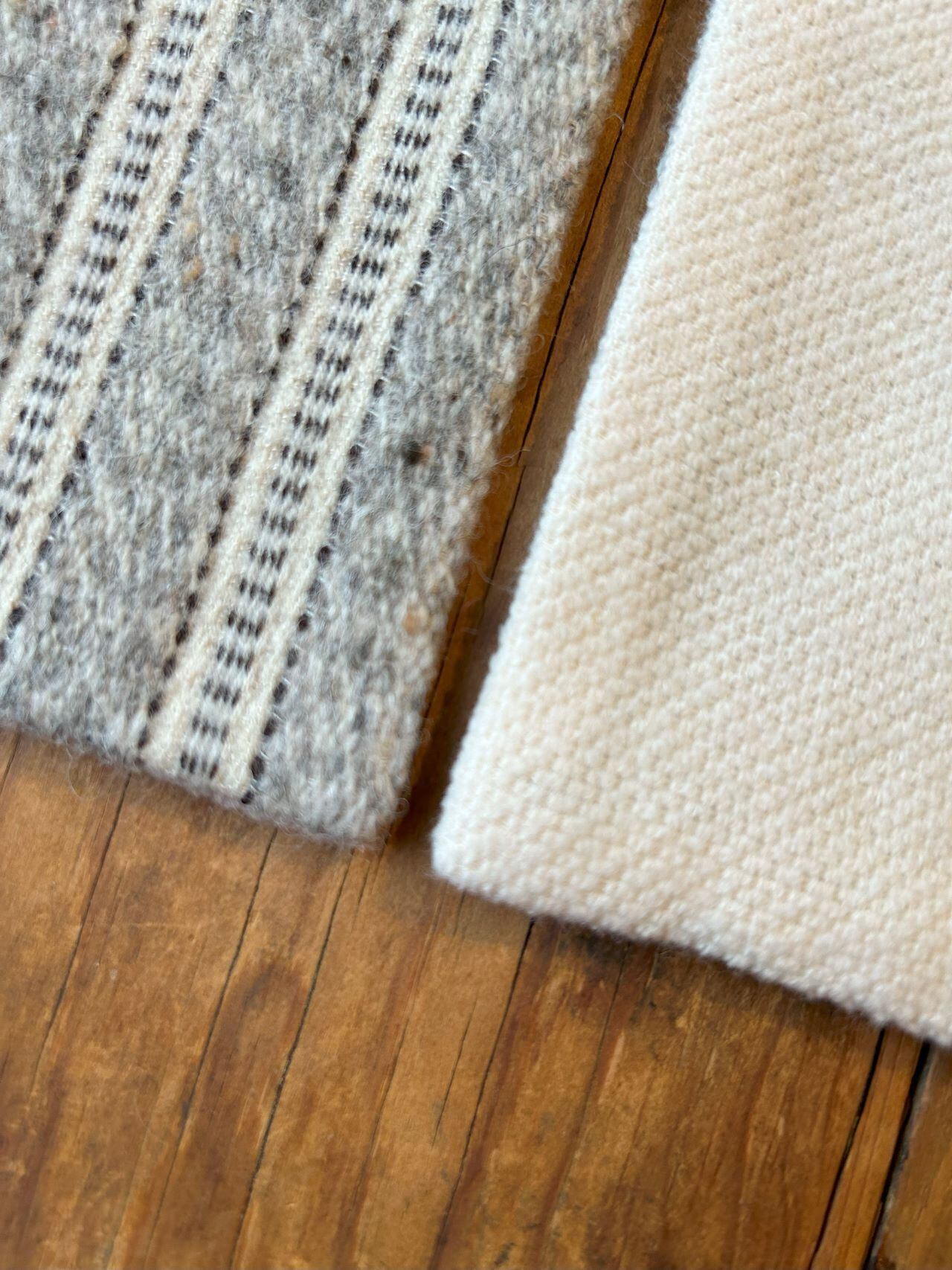 表面は今回のフェアテーマに合わせた暖かみのある冬生地を使用し、リバーシブルでお使いいただけます。(1枚目:表、2枚目:裏)