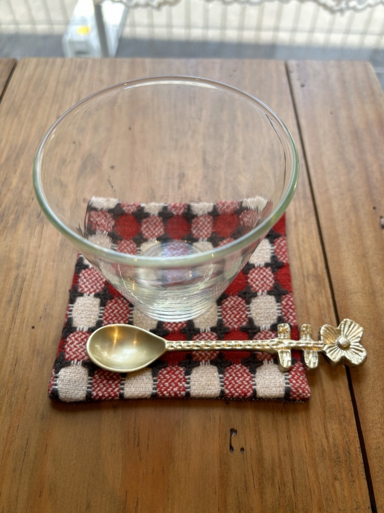 いつものコースターより一回り大きなサイズで、カップとカトラリーを一緒に乗せたり、ポットや急須の下敷きとしてもお使いいただけます。